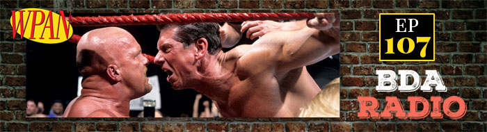 Pro wrestler “The Kingpin” Brian Milonas and referee Mike Crockett are joined by permanent guest host, most frequent guest and owner of the New England Pro Wrestling Academy & Chaotic Wrestling, Brian Fury, to discuss his most despised period in pro wrestling, the WWF’s Attitude Era! Despite Fury’s claims, there’s positives as well as negatives, so we break down the Good, the Bad and the Nothing of the most successful run in the company’s history. Hear our grades for getting the “F” out, the TV format shift, Medusa trashing the Women’s Title, hardcore wrestling, bad wrestling, Steve Austin, Steve Blackman, competition, cat fights, catchphrases, and so much more! Plus, you like watching Promos About Nothing for free?, Milonas’ HUGE match this Wednesday in Lowell for Ring Of Honor Wrestling (if he doesn’t die of heat stroke first) and Crockett takes a pounding!