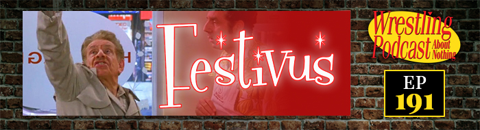Ring Of Honor Wrestling’s “The Brawler” Brian Milonas and referee Mike Crockett are without UPS’s Brian Fury, but that doesn’t damper the festive mood as today, they celebrate FESTIVUS! And, as any Seinfeld fan worth their salt knows, Festivus begins with the Airing of Grievances! Mike and Brian have their own, and of course, they invited friends and listeners to join in on the fun. Through this process, The Brawler addresses one of the most damning critics of Ring Of Honor Wrestling directly in a rant you HAVE to hear! Also, Mike Mills of Booking The Territory shares a shocking secret offer he made to Crockett and reveals his equally shocking reaction! All that, plus a current champion in WWE checks in with his gripe and so much more! HAPPY HOLIDAYS! Also this week, this Promo About Nothing is a mere illusion, Milonas gets paid to drink, and someone’s son makes an appearance!